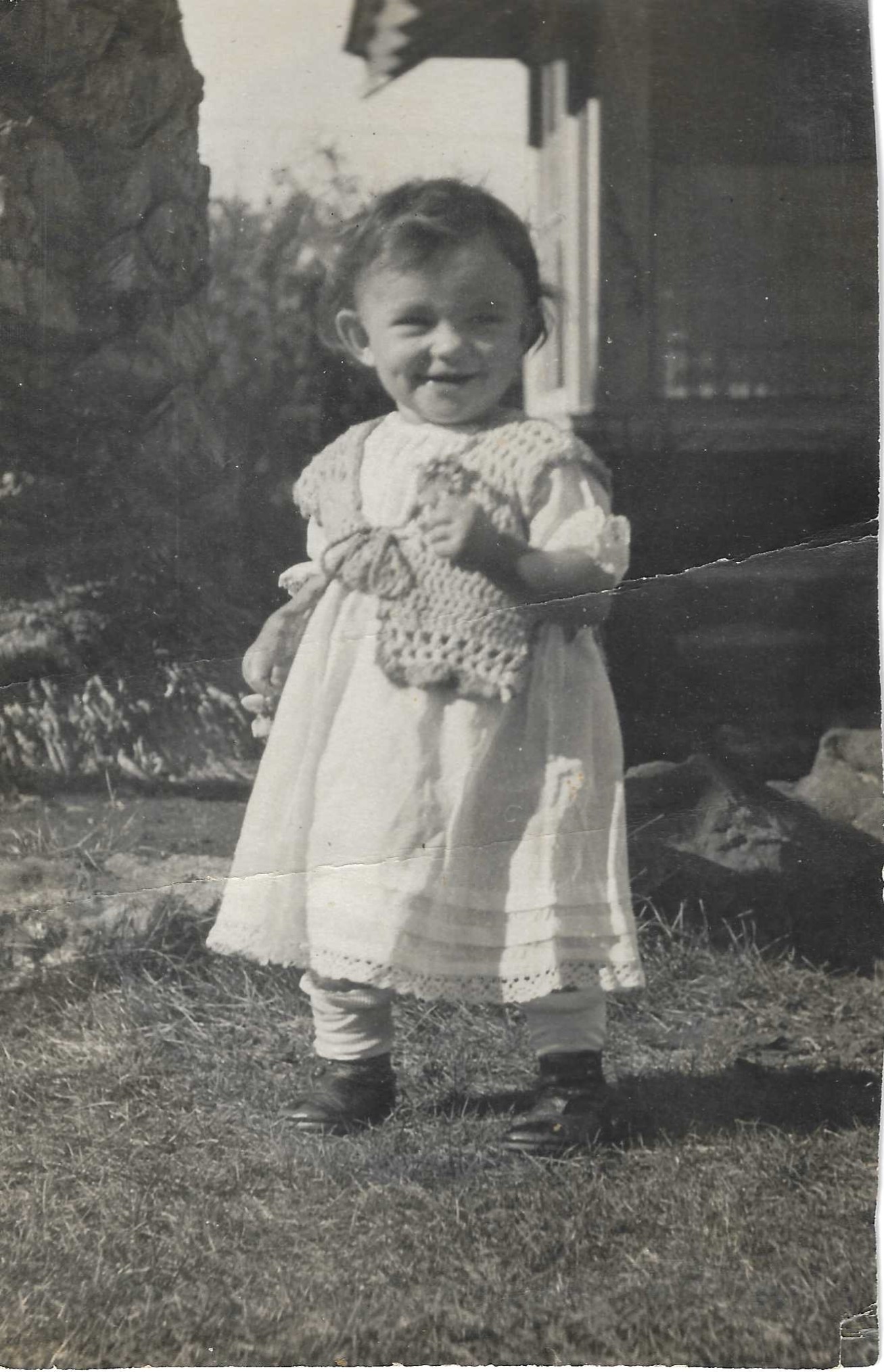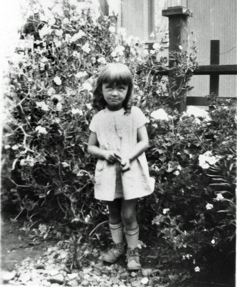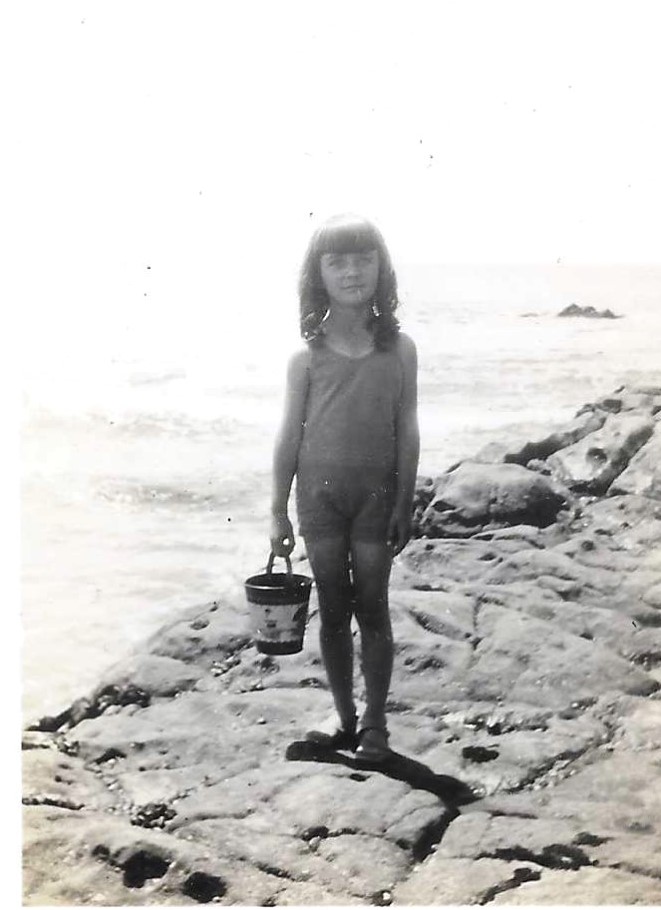 As a small child I loved the ocean more than I liked the garden. I would escape from the yard when my mother wasn’t watching and run down the dangerous path to the beach below. She would come after me, scolding me on the way back up. When I was about four she had a fence put up and I was no longer able to go to the ocean on my own. Now I look at the pictures of me from that time (above) and I can see I wasn’t happy about it. I was made a prisoner in the garden.