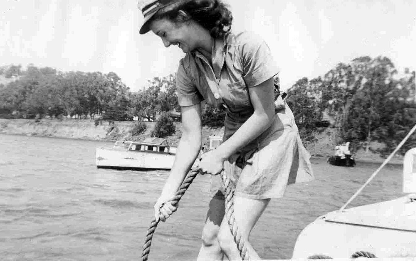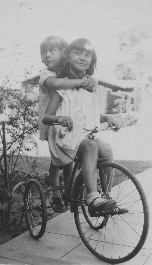 (Pictured above l to r: My mother Ileene Henderson Boys in 1914; lifting anchor on my father’s fishing boat; my sister Helen and I on my bicycle in 1931)
